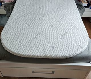 Sur-matelas en parfait état, comme neuf. Dimensions : 140×200 cm, épaisseur 7 cm Sur-matelas confectionné sur-mesure fin novembre 2024 ( facture à l'appuie, prix neuf : 480 €