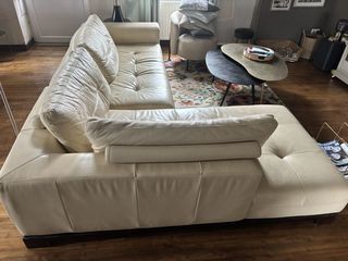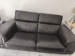 canapé cuir noir têtières rabattables marque Crozatier 2,20x1m