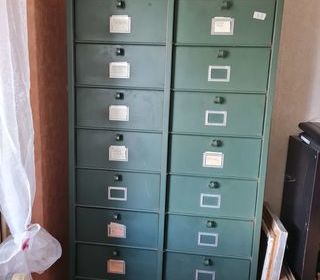 Ancien meuble Strafor années 70 à 20 clapets 20 tiroirs à clapet avec porte étiquettes Dimensions d'un clapet : 33cm de profondeur, 34cm de large , 17cm de haut hauteur 194 cms