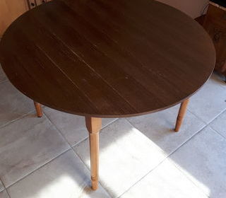 Table ronde datant de 1990 avec sa rallonge Diamètre 110 cm Hauteur 73 cm Longueur avec rallonge 145 cm Bon état général J'ai aussi 3 chaises achetées avec à l'époque en