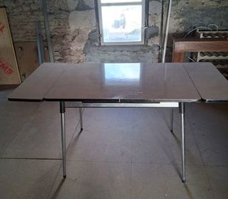 table de cuisne en formica blanc pied acier chromé avec 2 rallonge etirable