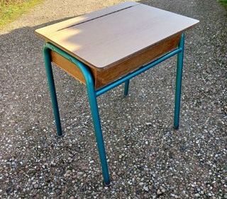 très beau pupitre écolier fer & bois L 65 x larg 50 x h 74 cm état neuf / grand casier sous écritoire
