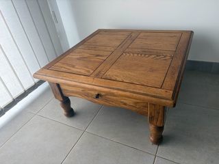 table basse en chene massif avec des chevilles en très bon état.table avec tiroir. 80/80 h38