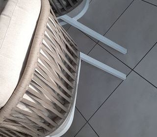 Lots de 4 fauteuils Hespiride très bon état pieds blancs alu très confortables couleur taupe