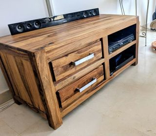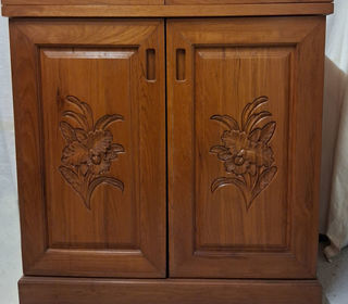 Vaisselier en accajou de fabrication portugaise en bois massif, 4 rangement sur le bas deux grands tiroir plus deux petit dans l'arrondi, pour le haut tablette en verre sur les cot
