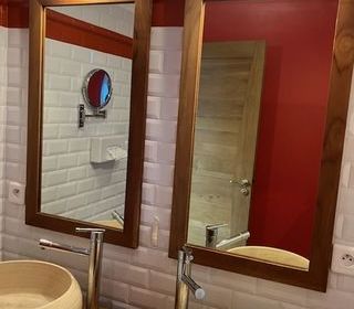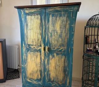 A vendre ensemble de salle de bain nombreux de rangement 2 portes et 3 tiroirs comprenant ; -1meuble double vasque 126largeur x0.81cm hauteur x 0.54 cm de profondeur -2 vasques e