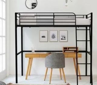 Lit mezzanine 1 personne en métal époxy noir idéal pour les petites pièces. dimensions de couchage 90 x 190 cm et son sommier inclus, Il mesure L198,2 x l146,5 x H182,5 cm V