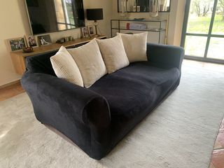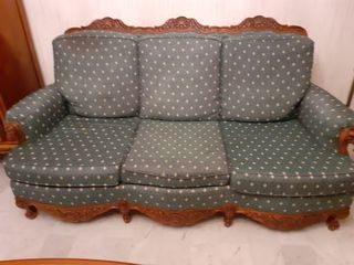 Canapé bergère bois massif et tissu de très bonne qualité. Très bon état. Dimensions approximatives : 190 x 90 cm, hauteur 95 cm ; assise 150 x 55 cm. Se trouve à Toulon quartier