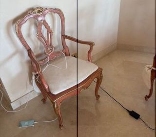 Vends cause déménagement, un ensemble de meuble peint, comprenant table 94X49XH 75 - Miroir 60X100 et son fauteuil canné.