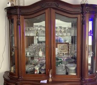 Armoire à linge, étagères, bois acajou laqué, 4 portes, miroirs, un petit tiroir intérieur. 180 /180 / 58 A retirer sur place