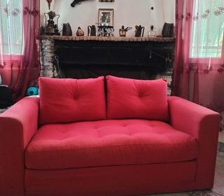 Canapé rouge - Longueur 1,50 - largeur 0,75 cm u une fois déplié pout couchage 1,75 cm (a servi une fois) . Très bon état.