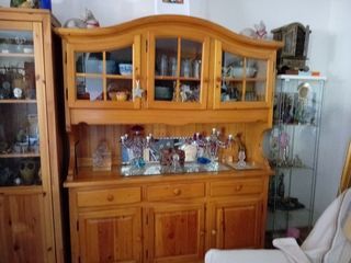 Meuble de salle à manger, pour ranger la vaisselle sur deux étages avec vitrines et forme arrondie au dessus du toit du meuble.Le meuble est en 2 parties et la partie du bas à com