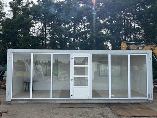 Notre bungalow (Algeco) dispose d'une surface intérieure de 20,2 m². La façade avant est entièrement vitrée et l'arrière comprend deux fenêtres. Le sol est isolé contre l'eau e