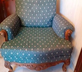 Fauteuil Bergère bois massif et tissu de très bonne qualité. Très bon état. Dimensions approximatives : 88 x 84 cm, hauteur 95 cm ; assise 50 x 55 cm. J'ai 2 fauteuils identiques.