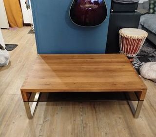 Table en bois de chêne, dessous en verre et pied en alu brossé Acheté 450€ A récupérer uniquement en main propre
