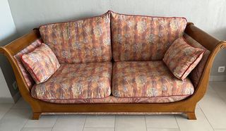 Vends canapé convertible style Louis Philippe boiserie en merisier. Literie 140x190 sommier en lattes de bois. Bon Etat. À récupérer sur place.