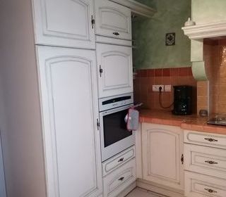 Cuisine complète plaquée chêne octobre 2003 avec électroménager (hotte, réfrigérateur, lave vaisselle évier deux bacs) Composée 1 armoire réfrigérateur 205/60/60 1 armoire four 2