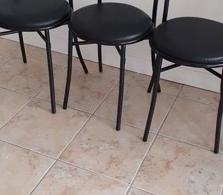 Cause vide appartement vends trois chaises couleur noire Dessus en skai En très bon état Visible à Bidart 20€ les trois