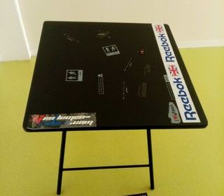 Vend deux tables jaune et noire 50cm×90cm sans rallonge 70×90cm avec une rallonge 89cm×90cm avec deux rallonges conviendrait dans petit appartement terrasse balcon bon état