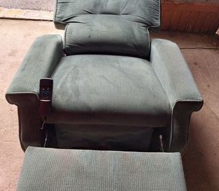 FAUTEUIL relax avec repose pieds et inclinaison réglable par télécommande Tissu velouté couleur vert - en bon état - Vendu 100 € - à régler en numéraire