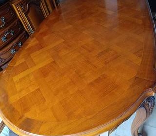 véritable fer forgé concernant 1 table avec dessus marbre de 30mm dimensions long.200cm.larg 100 cm; ht. 75 cm plus 6 chaises assise et dosseret simili grenat plus 1 buffet tout e
