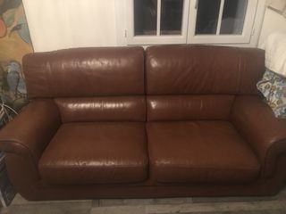 Vends 2 canapés deux places marrons marqué CUIR CENTER en bon états possibilité de vendre séparèrent.