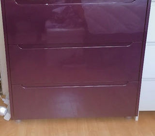 CHAMBRE A COUCHER POUR 2 PERSONNES; Laquée violette 1 LIT 140X190, SOMMIER A LATTES UNE COMMODE 3 TIROIRS 2 CHEVETS (très jolie) (vendue pour cause de déménagement)