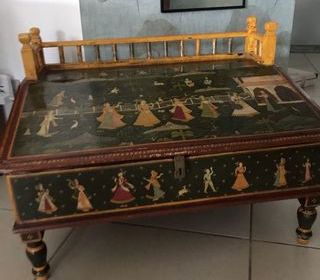 Je me défais d'un écritoire indien ancien ramené de Bombay en 1993. C'est un meuble décoré et peint à la main . Il s'ouvre et comporte deux petits tiroirs secrets . C'est une piè