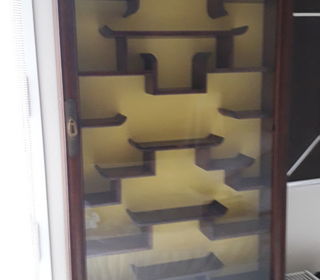 vitrine en bois de rose très bon état avec clé , H.78 cm. l. 45 cm. Pr. 10 cm.