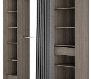Dressing 2 colonnes, 2 penderies, 10 tablettes et tiroir, avec rideau Dimensions H. 200cm x L. 200cm x p. 48 cm Matériau panneau de particules surfacé mélamine, épaisseur 16 mm,