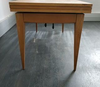 Voici une astucieuse table basse modulable en table haute. Un système simple en permet la transformation. Bref, une table très bien étudiée pour les petits espaces. Sympathiqu