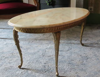 Je vous propose cette table basse de style Louis XV en bois massif marron. Avec son plateau en marbre et ses pieds galbés élégants, elle apportera une touche de raffinement et de