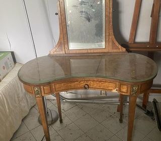 je vends cette coiffeuse style Louis€¦ XVI, un éclat au niveau du tiroir, vitre de protection cassé.