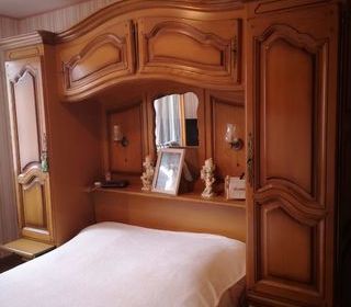 Vends chambre à coucher complète comprenant un lit pont de 140cm, une armoire et une commode en chêne massif. Très bon état.
