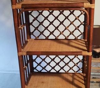 Très belle bibliothèque, étagère rotin. Etat neuf Hauteur 150 X Largeur 70. 4 étages
