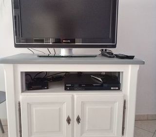 Meuble TV composé : - d'un meuble bas avec 2 tiroirs de rangement et une étage pour les appareils annexes. Largeur 152 cm x profondeur 62 cm x hauteur 49 cm. - d'un pont TV compr