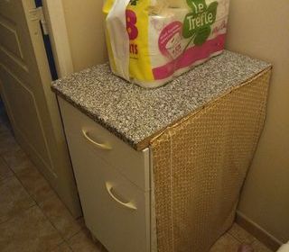 Vends petit meuble avec un tiroir et deux étagères : 40 cm de large, 60 cm de profondeur et 85,5 cm de haut, en bon état