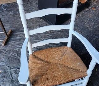 ROCKING-CHAIR VINTAGE EN BOIS BLANC 110cm hauteur x 62 cm largeur