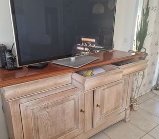 Cause décès je vends un meuble bas de salle à manger en bois en très bon état. Dimensions : hauteur 1 m 32, Profondeur 50 cm, Largeur 1 m 30. 4 portes fermées à clefs, 4 grandes ét