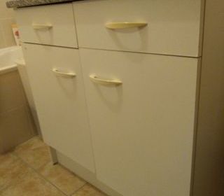 Vends meuble de salle de bain avec 2 tiroirs et 2 étagères, 81 cm de large, 60 cm de profondeur et 85,5 cm de haut