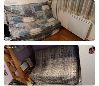 Banquette lit très pratique possibilité de choisir la housse car j en ai deux la blanche et noire a une tà¢che qui se cache facilement avec un coussin une 70 euros, les deux 130
