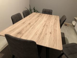 Ensemble salle à manger, 6 places, 6 chaises assise velours Dimensions: longueur/ 160cm largeur/ 90cm hauteur / 75cm ÉT