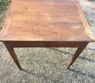 Petite table en bois hauteur 0,71/ largeur 0,71 / longueur 0,54 un pied à revoir prix 5€
