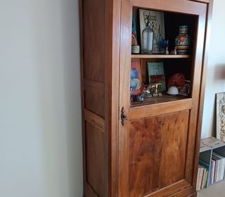 Bonnetière ancienne en noyer massif, Chevillée Meuble ancien authentique en excellent état Intérieur aménagé avec des étagères réglables Elle dispose d'un grand tiroir en ba