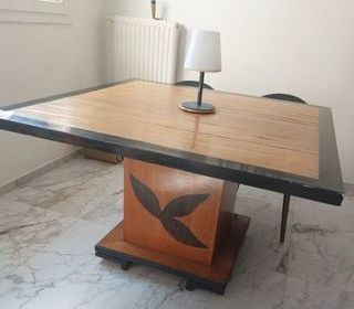 TABLE DE SALLE À MANGER EN BOIS ORIGINE DU BOIS BAMBOU. TABLE CARRÉ 120X120 AVEC UN MAGNIFIQUE PIED CENTRAL. FACILEMENT DÉMONTABLE POUR LA TRANSPORTER.