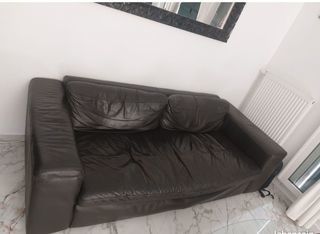 Canapé 3 places en cuir de coloris marron foncé. Largeur 2.02m Profondeur 93cm
