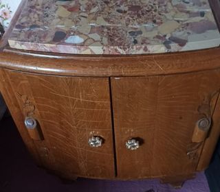 Chevet date des années 60 Plateau en marbre Placard double porte En assez bon état général Massif et élégant A venir chercher sur place