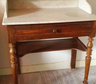 Coiffeuse en bois Dotée d'un tiroir et d'une étagère en dessous Dessus marbre Hauteur totale 93 cms Hauteur travail 77 cms Largueur 80 cms