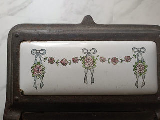 Charbonnière émaillé de la fonderie Franco Belge de Merville, des années 30, dessus émaillé au décor coloré A venir chercher sur place