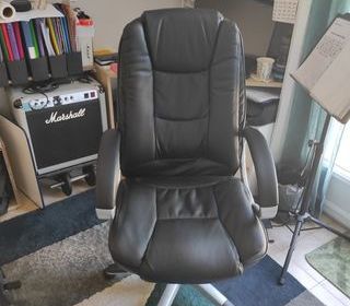 Fauteuil récent (6mois) à roulettes (4) Assise et dossier et simili cuir impeccables (utilisés avec couverture) Avec accoudoirs fixes er levier de réglage en hauteur Uniquement